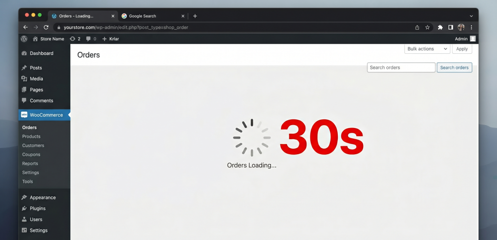 Every time you load the WooCommerce admin orders screen, WordPress runs queries against these tables. Filtering, sorting, counting. The tables were designed for blog posts and pages, not for high-volume transactional data.